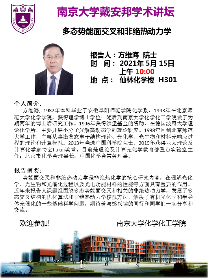 5月15日戴安邦学术讲坛-方维海院士:多态势能面交叉和非绝热动力学