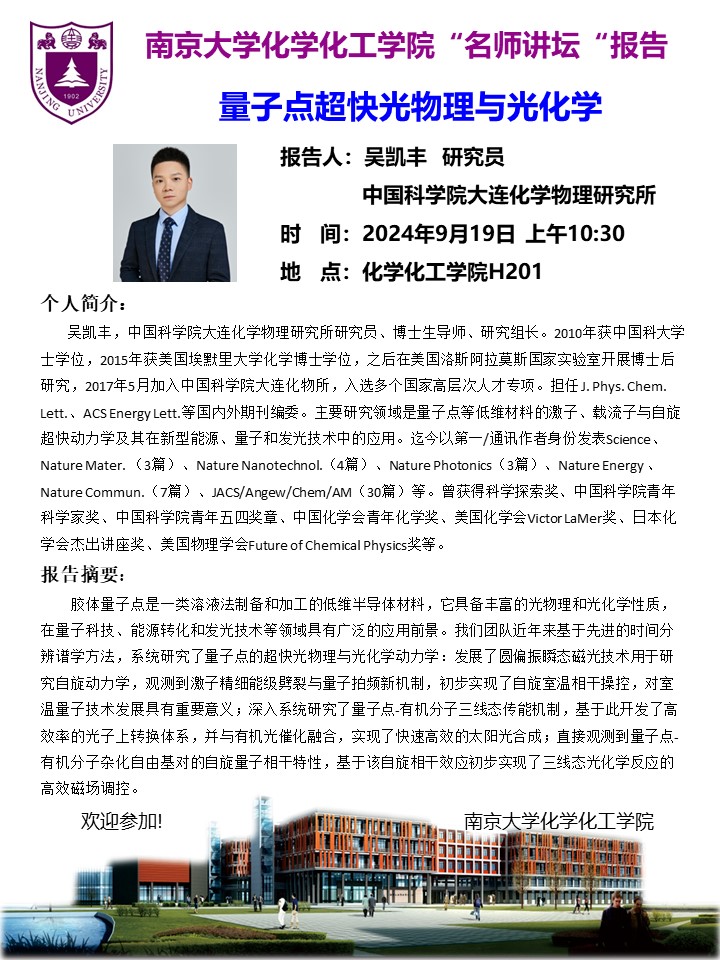 9月19日名师讲坛-吴凯丰研究员:量子点超快光物理与光化学