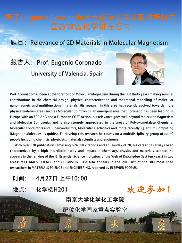 授予Eugenio Coronado博士太阳成集团兼职教授仪式暨游效曾化学讲座报告