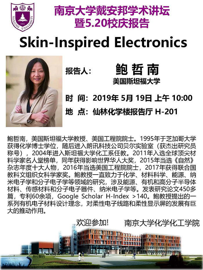 5月19日鲍哲南院士:Skin-Inspired Electronics
