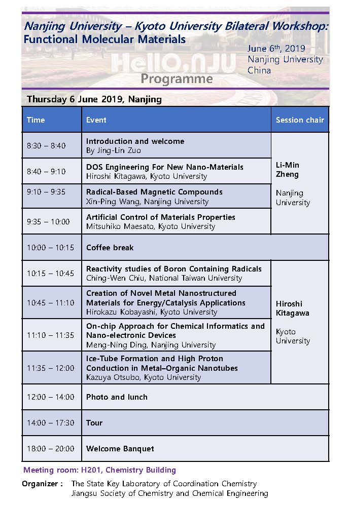 Nanjing University - Kyoto University Bilateral Workshop:Functional Molecular Materials