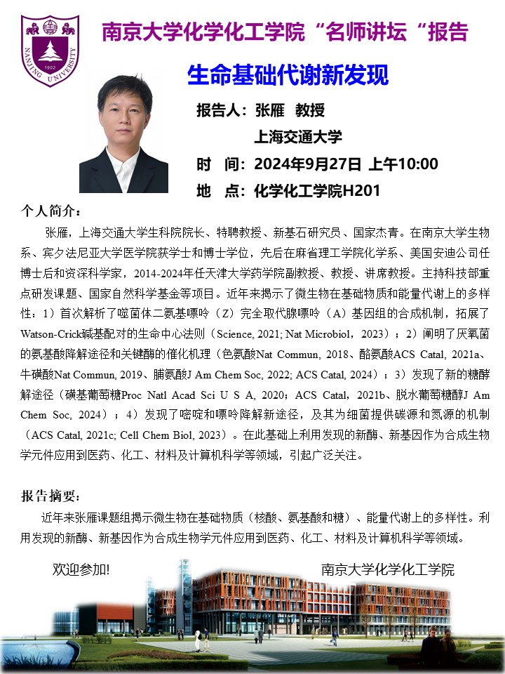 9月27日名师讲坛-张雁教授:生命基础代谢新发现