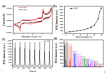 而Cb2表现出了明显的聚集诱导电化学发光(AIECL)性能,且表现出优良的ECL稳定性。同时Cb2可应用于神经递质多巴胺浓度检测,在生物检测领域表现出潜在的应用价值。