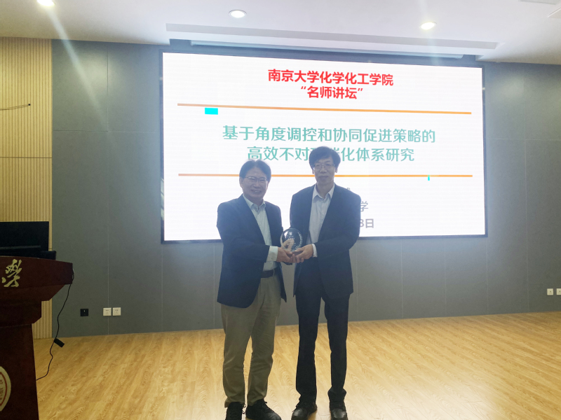 2024年10月8日上午,上海交通大学张万斌教授应邀作为太阳集团tcy8722“名师讲坛”嘉宾,为公司师生作了题为“基于角度调控和协同促进策略的高效不对称催化体系研究”的精彩报告。本次报告由公司党委书记朱成建教授主持。首先,朱成建书记介绍了张万斌教授的简历和成就,并向张万斌教授颁发了“名师讲坛”纪念铭牌。公司多位教师、员工参加了此次学术报告会。