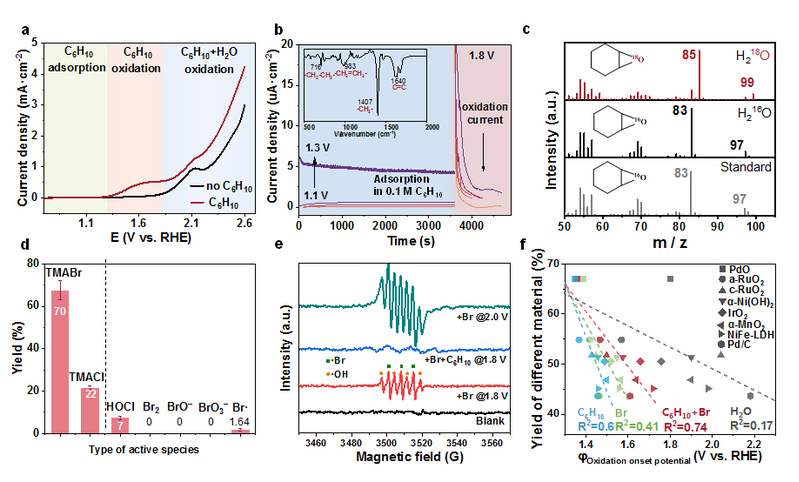 图2:溴自由基辅助的烯烃环氧化的电催化性能