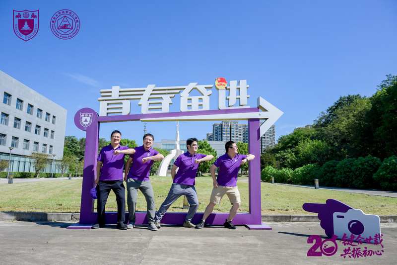 中午,大家来到鼓楼校区,在老化学楼前驻足,寻找当年做毕业设计的实验室。同学们三五成群,慢慢走过教学楼、大礼堂,在北大楼前合影留恋,统一印着20周年聚会logo的紫色T桖和“键合廿载,共振初心”的横幅引来了路过小同学们的羡慕和祝福。南苑餐厅的午餐就像20年前的毕业聚餐一样充满欢声笑语。