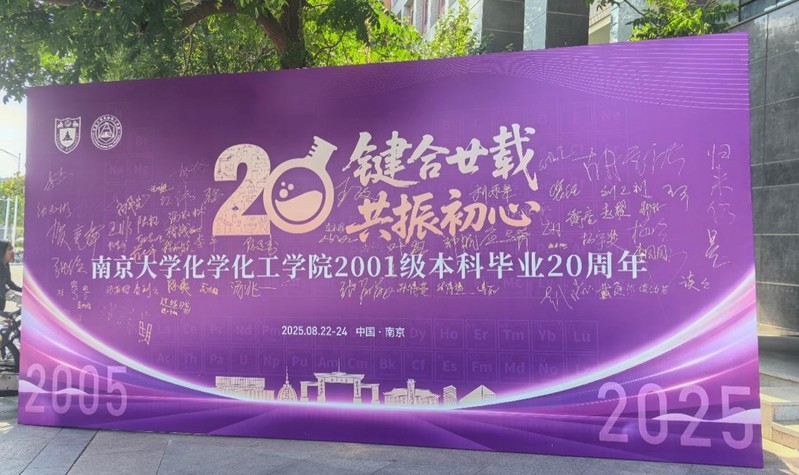 8月23日,南大化院2001级本科同学满怀热情,顶着高温从祖国各地奔赴南京相聚,共同庆祝本科毕业20周年,追忆同窗四年的美好时光。